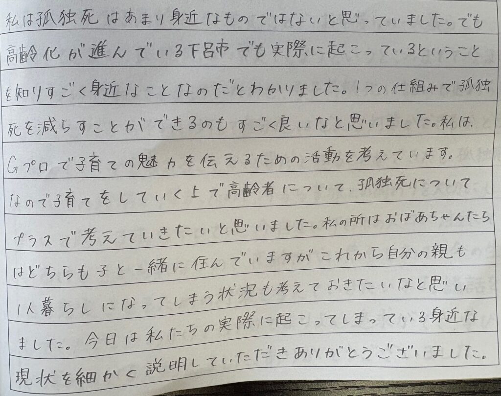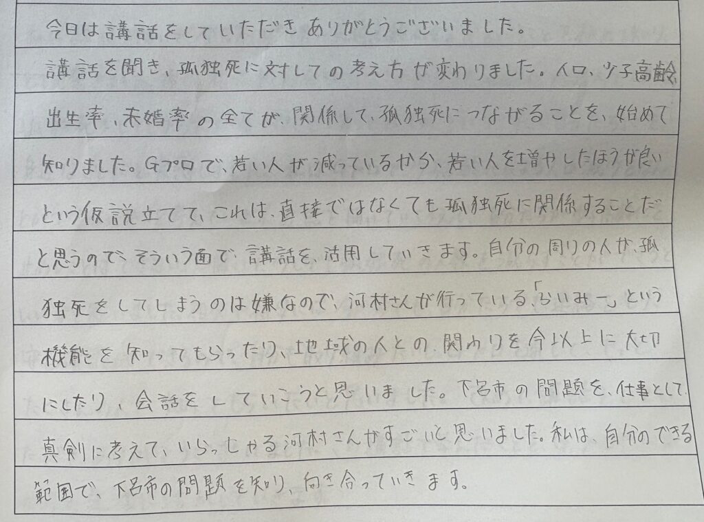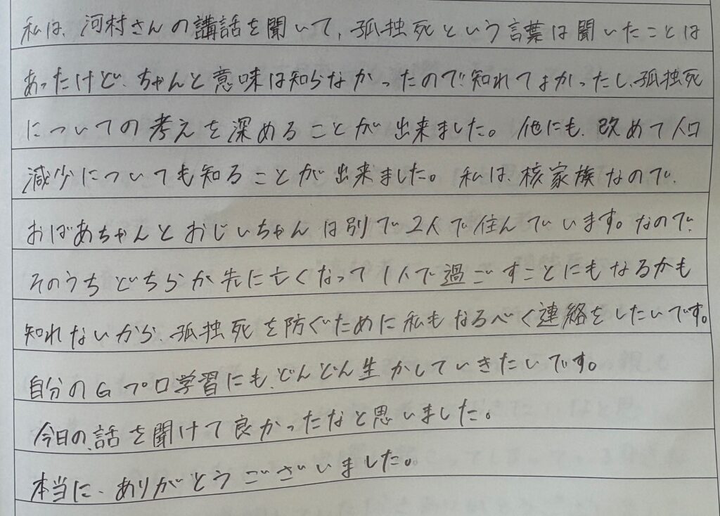 - 「孤独死が遠い話ではなく、身近に起こり得ると感じた」