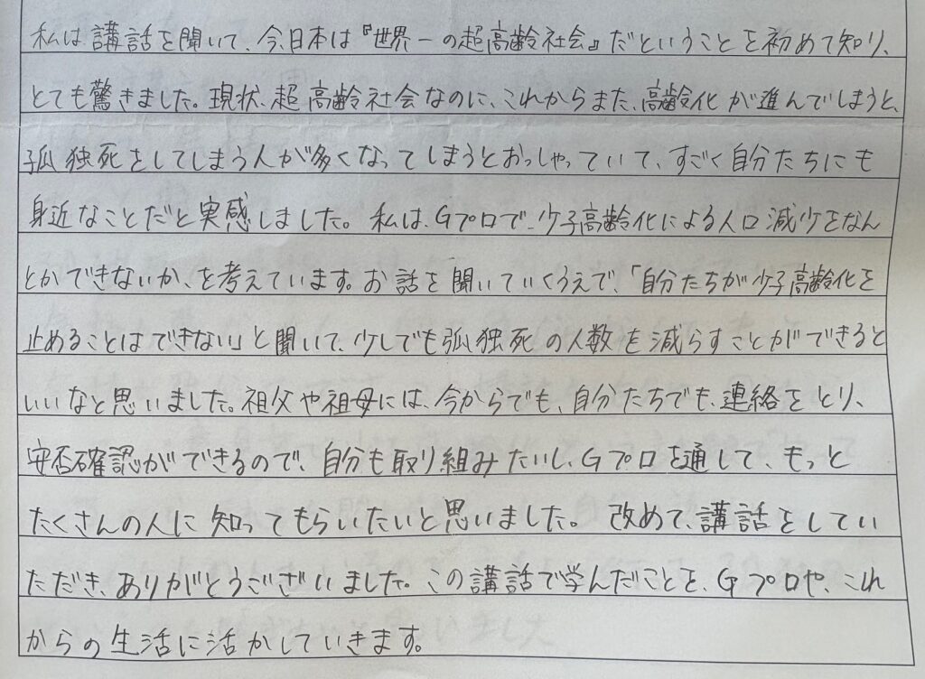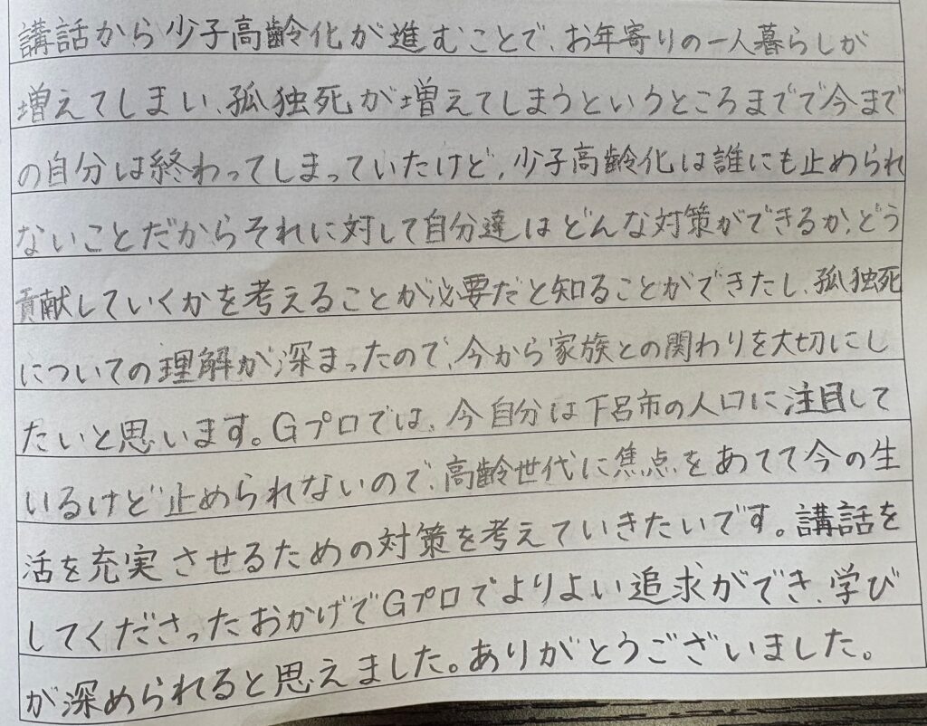 中学生向け出前講座を実施しました 少子高齢化を「数字」から「暮らし」へつなげて考える